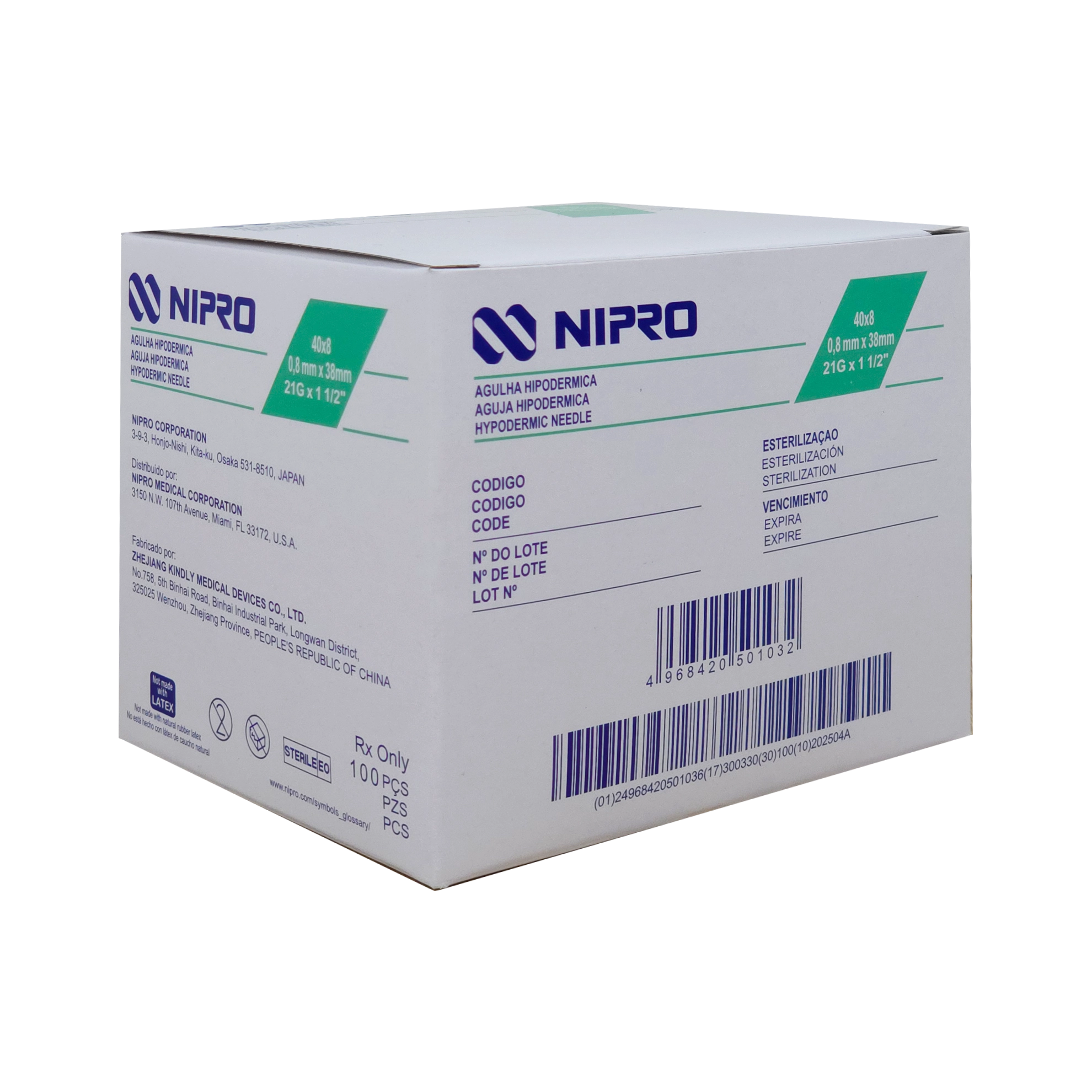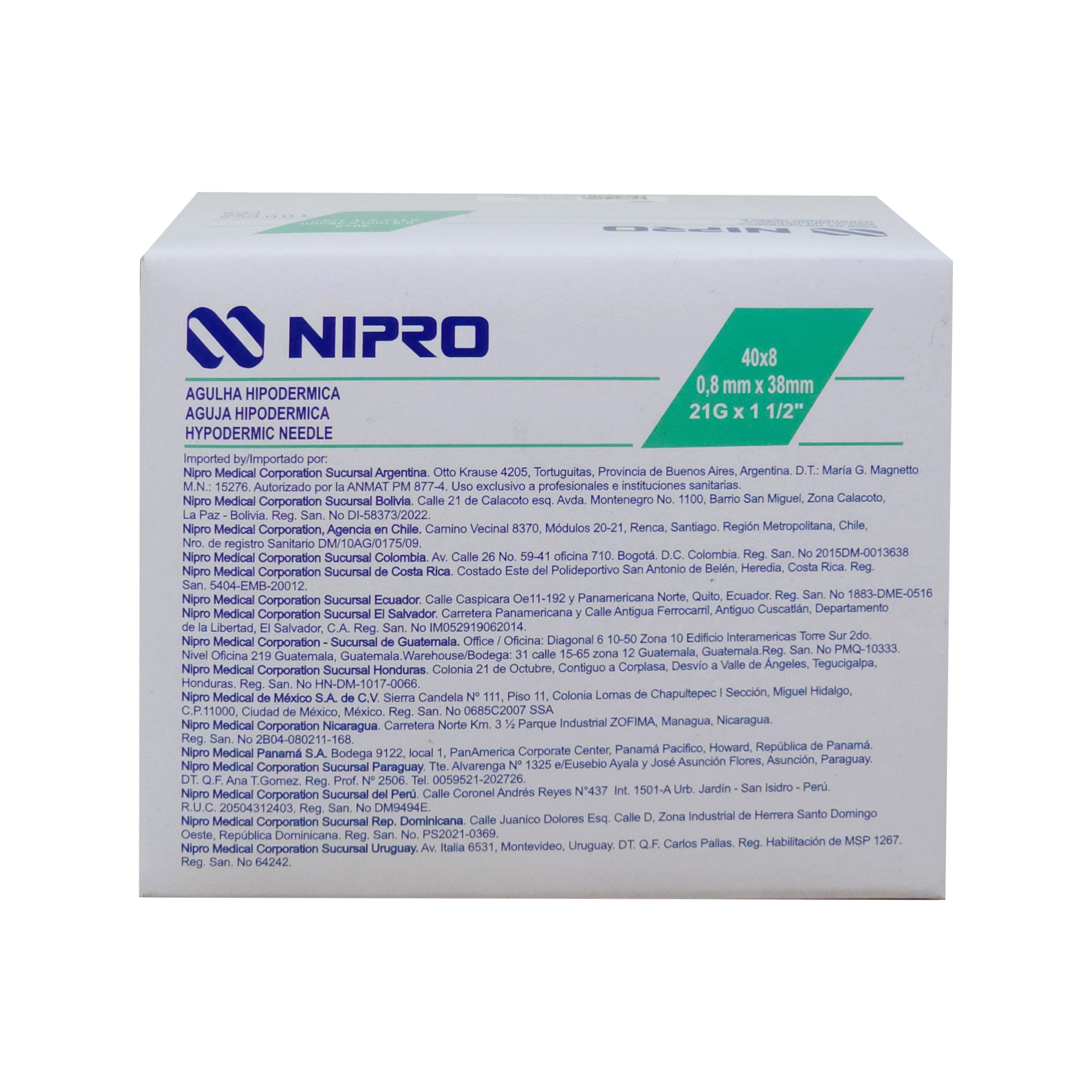 Aguja hipodérmica 21gx1-1/2 Nipro