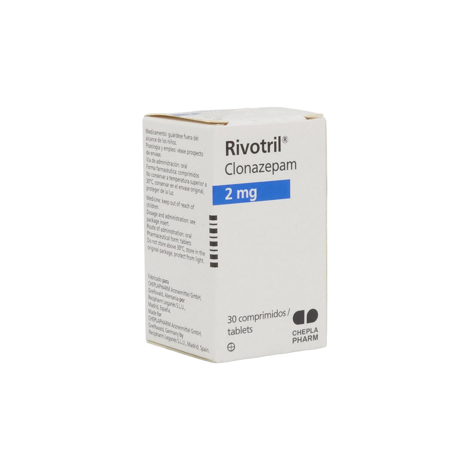 Presentación y unidades: Caja con 30 Comprimidos de 2 mg
